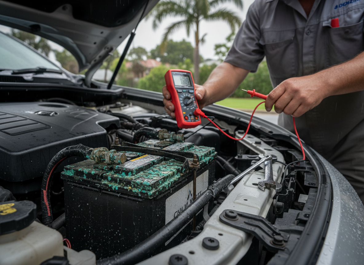 Perth’s northern suburbs cop humidity like nowhere else in the metro area. When moisture hangs in the air after summer storms or during those sticky February mornings, your car battery is fighting a silent battle you probably don’t even know about.